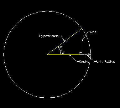 One of the hardest things I found when learning about geometry and computer graphics was how to ‘see’ a rotation matrix and how they are used, they are a handy thing to have and understand in your programming toolkit for AutoCad also. I won’t delve to deep into matrices or calculations, what I hope to achieve in this article is to expose a simple way for you to ‘see’ a rotation matrix, when I read an article on basic trig it all fell into place so that’s where we’ll start.